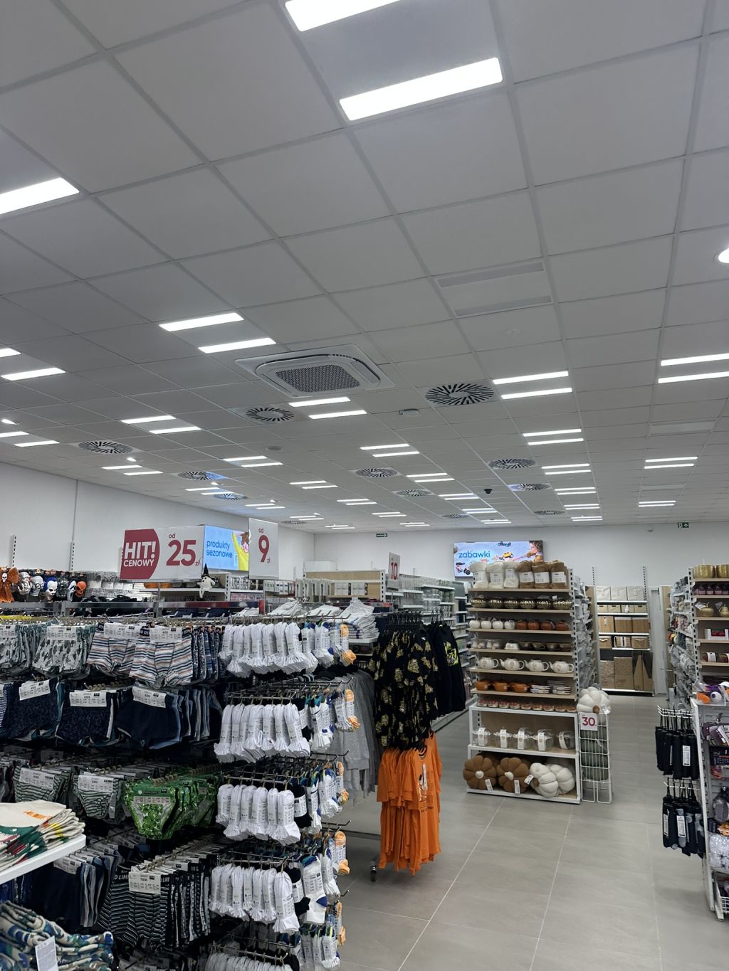 W ramach prac wykonaliśmy: instalację systemów wentylacji, klimatyzacji oraz wodno-kanalizacyjnych; wykonanie kompletnej instalacji elektrycznej wraz z oświetleniem technicznym i dekoracyjnym; prace budowlane i wykończeniowe, w tym: systemy suchej zabudowy, układanie płytek, montaż wewnętrznej stolarki drzwiowej, przygotowanie powierzchni pod wyposażenie sklepowe
